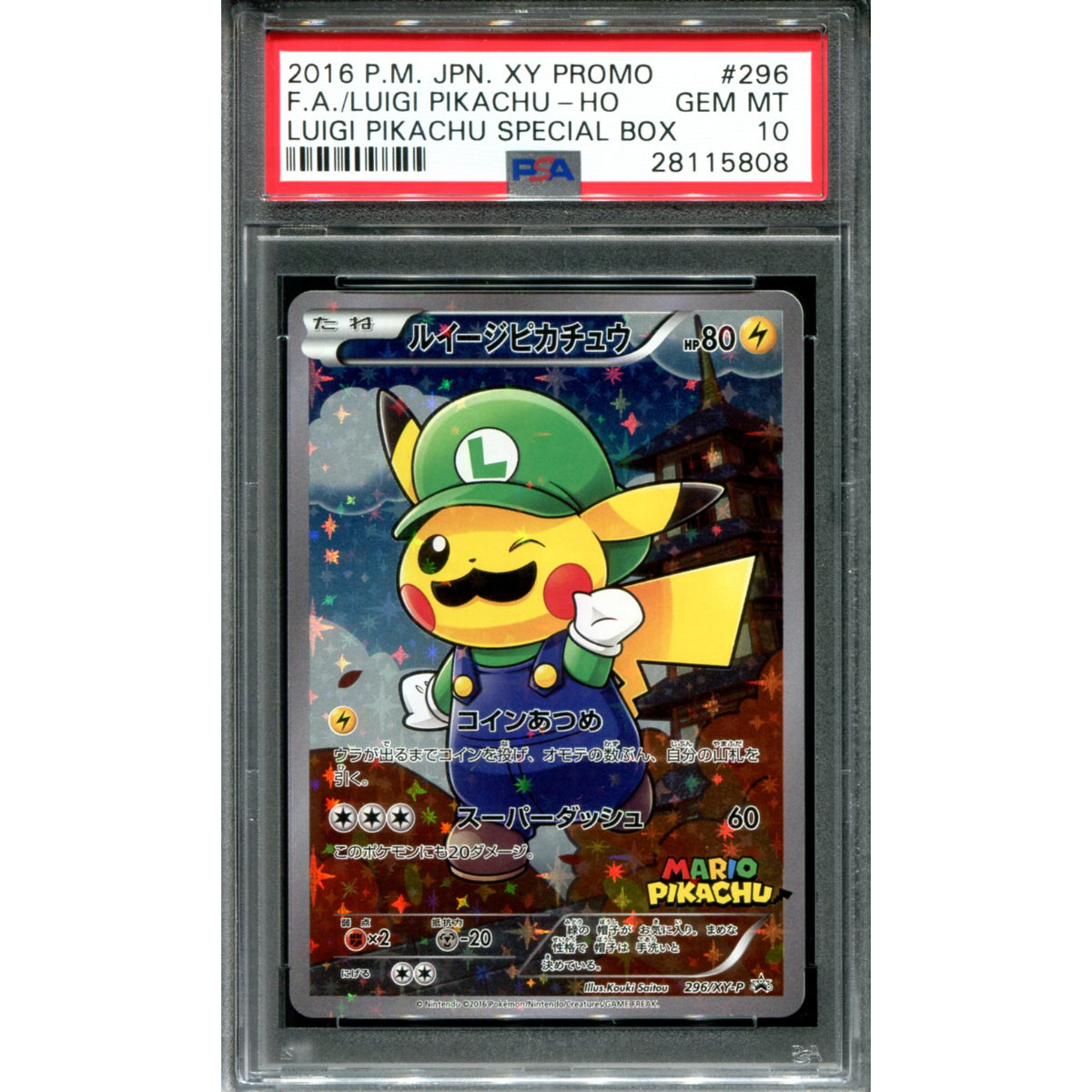 POKEMON TCG - JAPANESE LUIGI PIKACHU 296/XY-P POKEMON PSA 10 LUIGI PIKACHU SPECIAL BOX